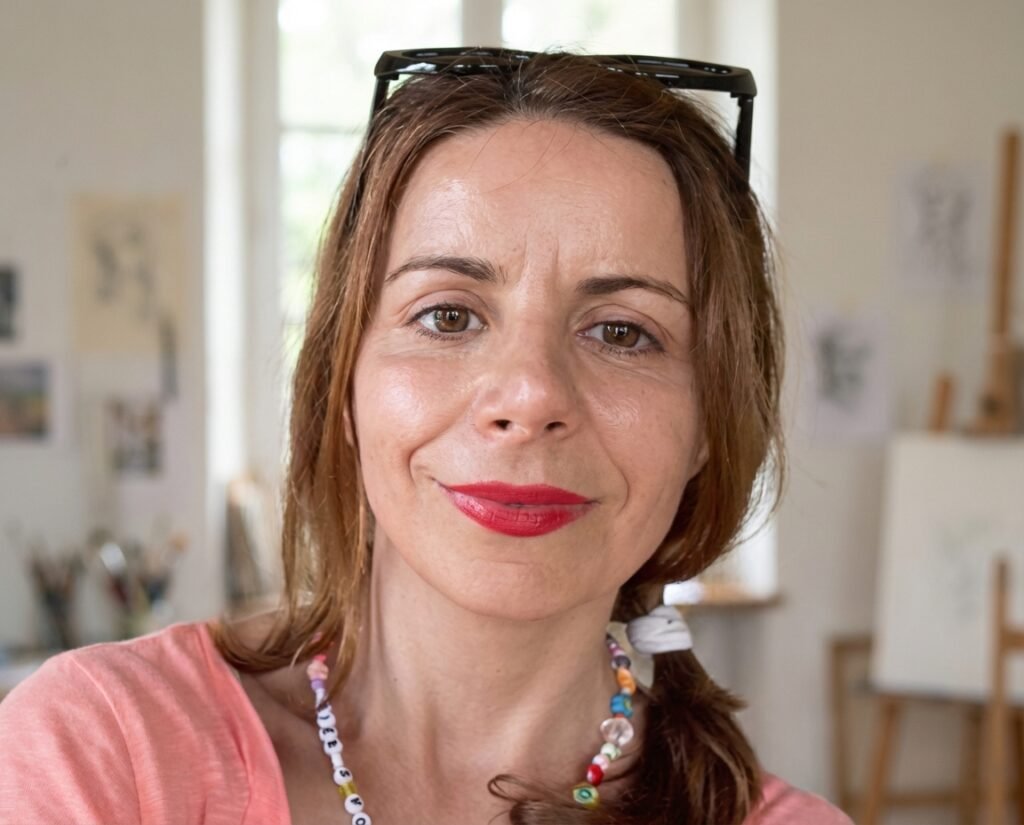 Oana Munteanu is a painter whose practice bridges classical technique and contemporary spatial expression. Trained in Fine Arts in Timișoara, with early formation in painting studies and later specialization in mural work and gilding techniques, her work moves fluidly between easel painting, large-scale murals and decorative surfaces.